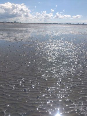 Frühstücken auf dem Balkon der 7. Etage bei überwältigender Aussicht zum Strand, dem Watt, dem Meer und auf den Weltschifffahrtsweg.